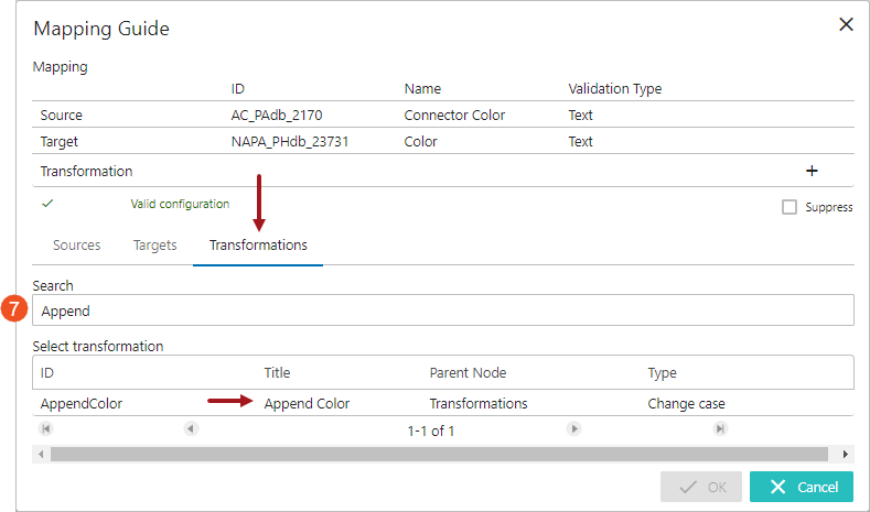 The selected transformation will be populated in the Transformation field (as shown below).