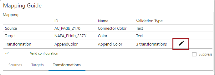 The populated transformation can be edited / removed by clicking the edit icon () in the Transformation field.