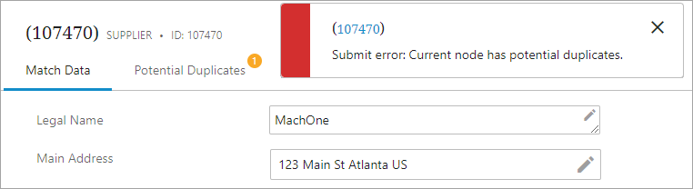 One of the initial steps in onboarding a new supplier or customer is to check if the new supplier or customer already exists in the MDM system. The standard recommendation for this check is the ‘Find Similar’ functionality which either provides an absolute match based on predetermined criteria or provides a list of potential duplicates. A ‘Not’ business condition may be used to prevent the submission of the onboarding task to the next workflow state if potential duplicates exist. This means that Otto (or another procurement user) must adjudicate the potential duplicates before the onboarding process can proceed, which ensures a high degree of data quality at entry into the system.