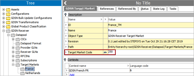 Add contexts and language codes to the Target Markets. Note that it is possible for multiple language codes to apply to a single context.