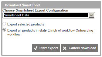 - In the Download Smartsheet dialog, choose the relevant export configuration and then select the relevant products for export.