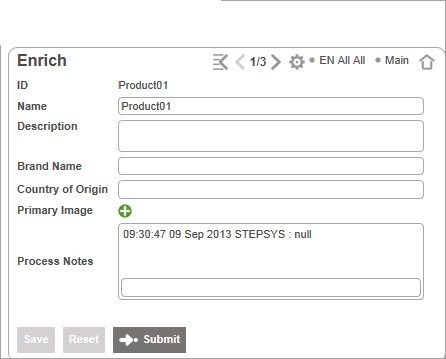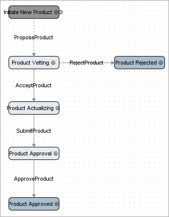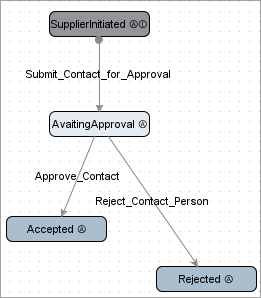 The idea is that a supplier user initiates a product, another (possibly internal) user enriches the product with additional information, a third user (internal marketing employee) updates marketing relevant information. The final state is 'Remove_Object_From_Workflow' meaning that the product has successfully been transitioned and maintained through the workflow using the Supplier Web UI.