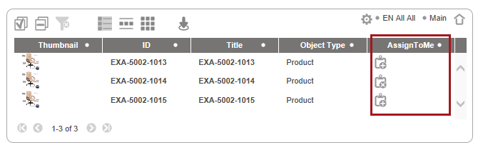 Notice the column 'AssignToMe.' Each task has an icon that allows the user to assign the task to himself (