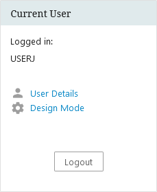 - Current User - This widget shows the user currently logged into this Web UI and allows for the user to change details, enter the Design Mode, or log out.