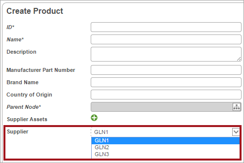 If a supplier user is a member to more than one supplier group and the setting 'Enable all-view for users that are a member of multiple suppliers' is set to Y(es) the supplier user will have to choose to which supplier group the created product should be created to. Refer to the Supplier Web UI Setup Guide topic.