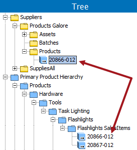 - The 'Create Supplier Product Toolbar Action' option creates products in the blue product hierarchy.