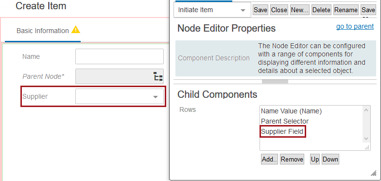 To be able to create products or entities for a specific supplier group, the Supplier Field component must be added to the initiate screen. This allows all accessible supplier groups to be chosen when creating a product or entity. Otherwise, a new object will be added to the first in a list of available supplier groups.