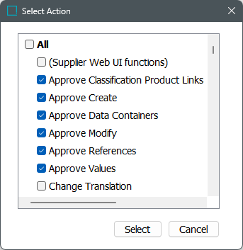 - Select all, or one or more actions by clicking the relevant check boxes.