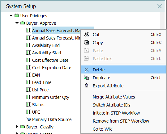 In System Setup, open the desired attribute group.