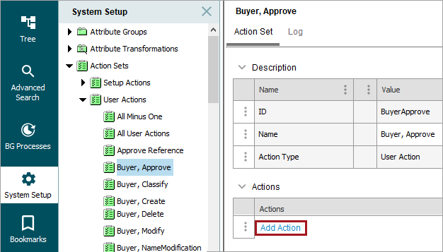 - Type the ID and Name of the Action Set. In this example we will create a 'Buyer Approve' Action Set.