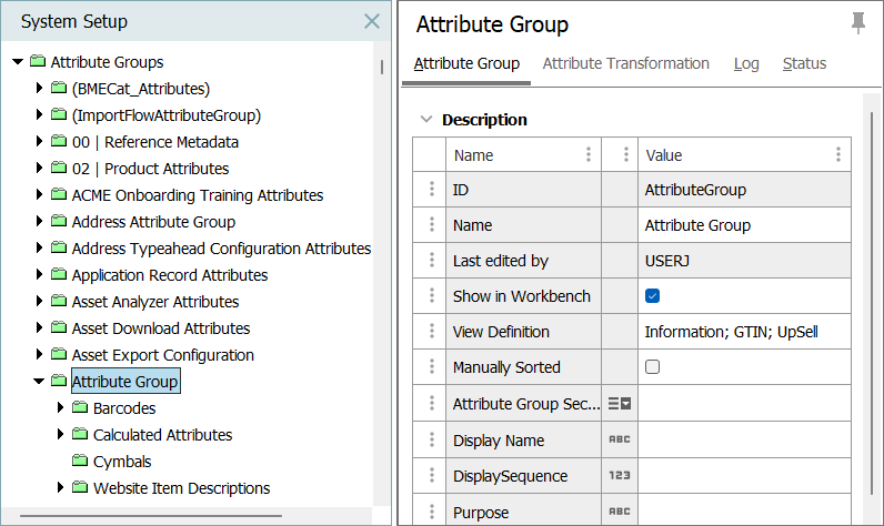 In the workbench, attribute groups are housed in System Setup as shown below.