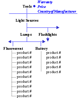 As an example, a specification attribute called 'BladeWidth' might be linked at the 'Saws' node (below the ' Power Tools' node). Therefore, the attribute 'BladeWidth' is available to both the sub nodes 'Circular Saws' and 'Table Saws', by inheritance.
