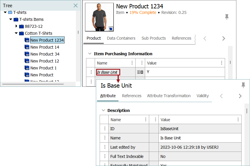 1. In Tree, select the product with the orphan attribute, or alternately, in the Search Result tab, search and select the attribute.