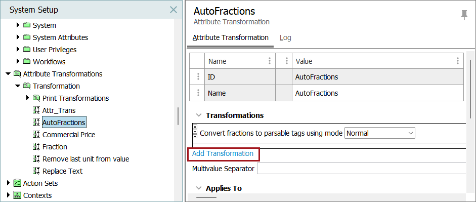 Attribute transformations are maintained in System Setup > Attribute Transformations can be used to transform attribute values, product names, and terms lists. Transformations are not intended to be a substitute for a programming language but can give a non-technical user the opportunity to modify data, using series of standard modification operations.