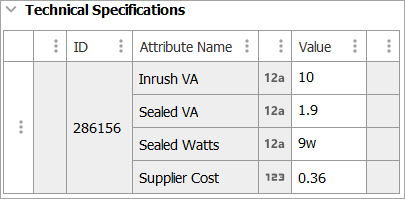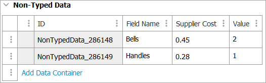 Supplier Cost ranges from 0.19 to 0.45 in data container types 244320 and 244321. |