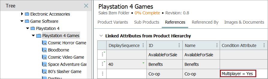 Conditional Attribute - This attribute appears as a metadata field on Description attributes and on Specification attribute links in the Product Hierarchy. Conditional expressions are stored in this attribute.