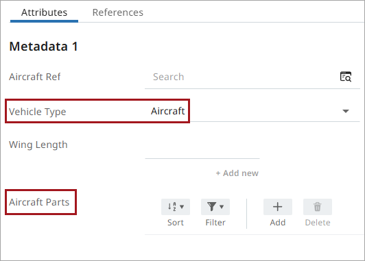 Reference type attributes provide information about the relationship between referenced objects. For more details, refer to Metadata Attributes on Reference and Link Types in the System Setup documentation.