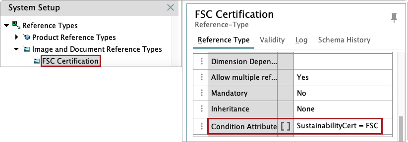 The ‘FSC Certification’ reference type should only be available when 'Sustainability Certification' is set to 'FSC':