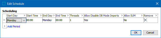 Allow Disable DB Mode Imports - Indicates if the process is allowed to disable the database mode importer within the period / window. In most cases, it is safe to set this value to 'Yes.' With In-Memory systems, it should always be set to 'Yes' since the database mode importer is disabled.