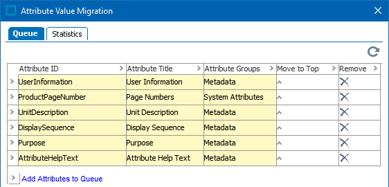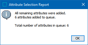 The attributes are added to the queue. Select additional attributes or remove undesired attributes from the queue.