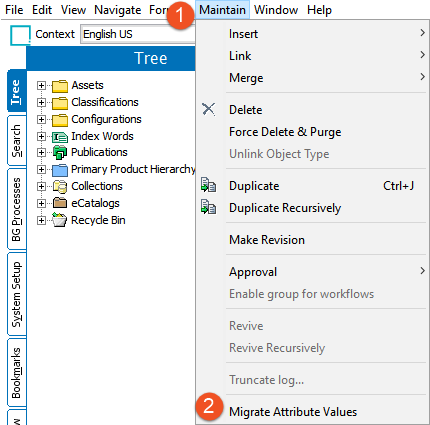 From the Maintain menu, select Migrate Attribute Values.