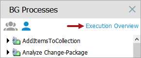 Admin users with the 'View Background Processes of Other Users' setup action can monitor the execution of background processes via the 'Execution Overview' link available on the BG Processes tab in the workbench.