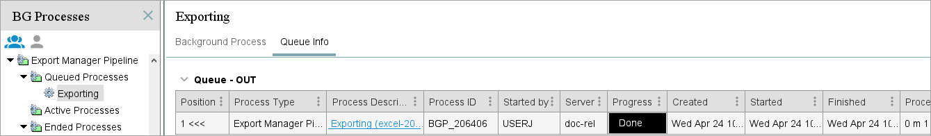 The Waiting Background Processes section shows the BGPs waiting to be executed. The columns shown are: