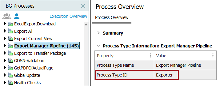 - Right-click the value of the Process Type ID, copy and paste the value in a temporary text file. In this example 'Exporter' is copied and pasted. This value will be used to set the configuration property below.