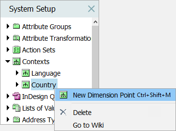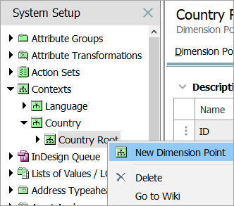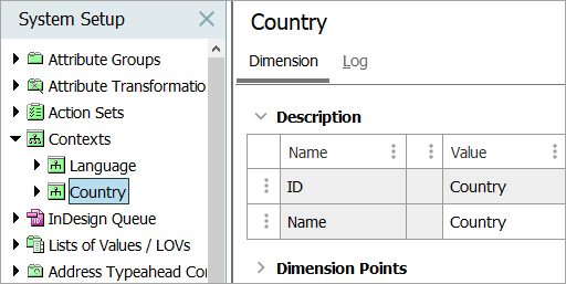 On the System Setup tab, select the relevant dimension, in this example, Country.