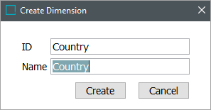 In the Create Dimension dialog, enter an ID and Name, then click Create.