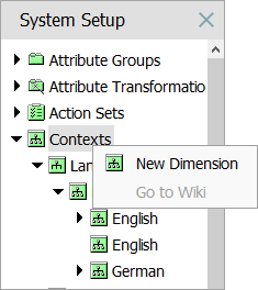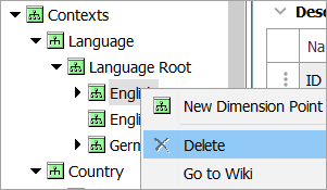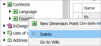 On the System Setup tab, on the Contexts node, select the dimension to delete.