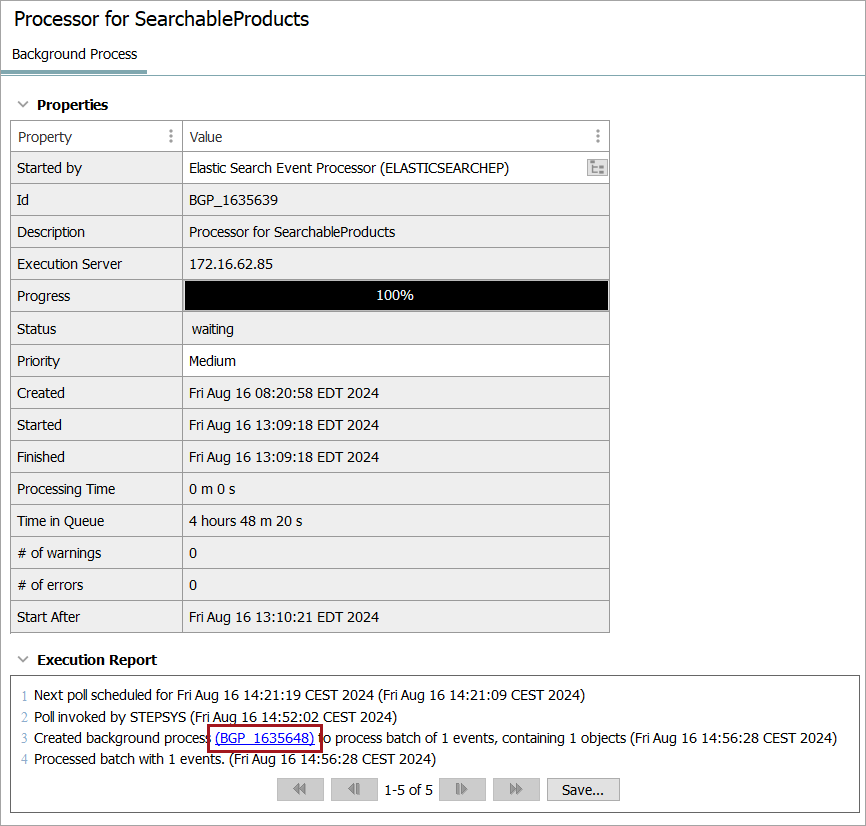 Review an Elasticsearch Indexing background process Execution Report and click a background process link to view the details.