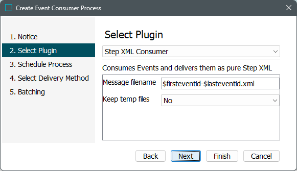 • Step XML Consumer (default) delivers events as STEPXML. For more information on this format, refer to the STEPXML Format topic in the Data Exchange documentation.
