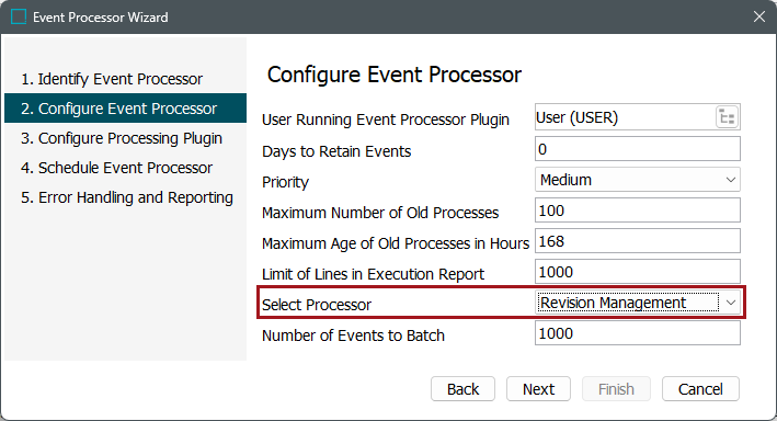 Once the Revision Management processing plugin has been selected, click the Next button, and the wizard step 'Configure Processing Plugin' will display.