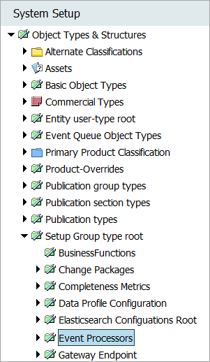The Create Object Type dialog will close, and the newly created object type for the event processors will display beneath the Setup Group type root.