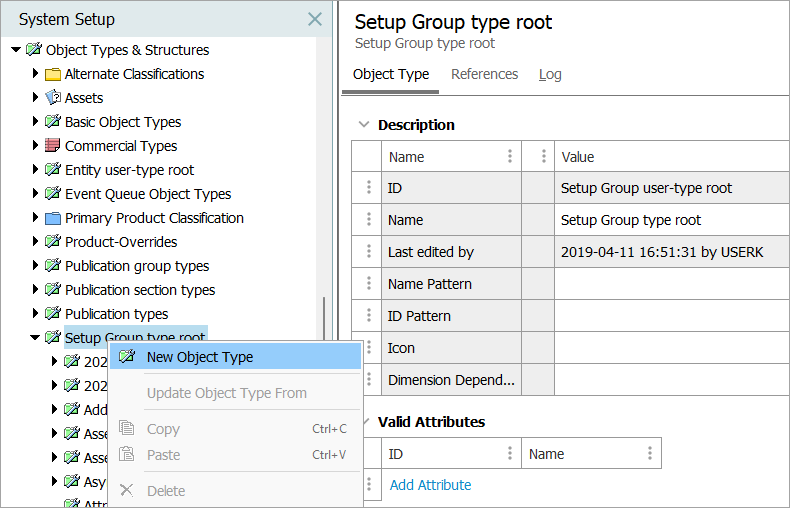 - Go to System Setup, open the Object Types & Structures node, and select Setup Group type root.