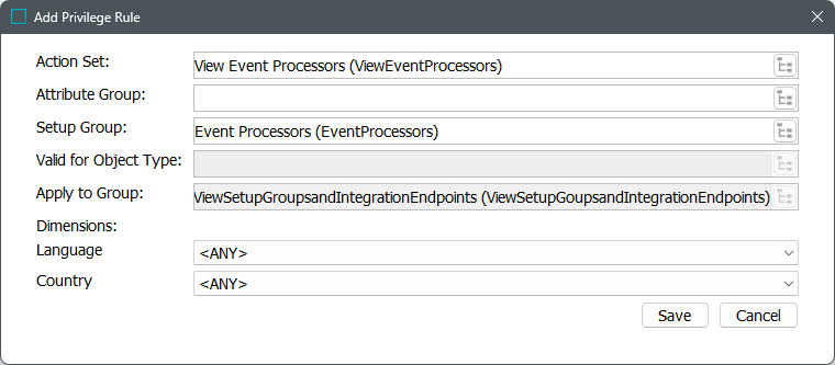 In some situations, it can be useful to create an event processor specific action set. For example, if you have users who are allowed to maintain event processors and users who are only allowed to view event processors.
