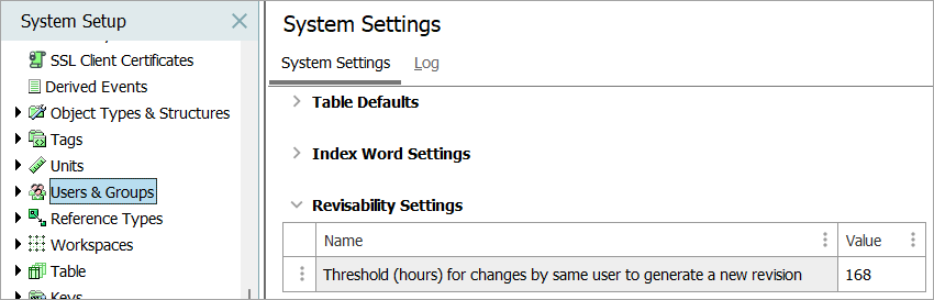 By default, the system creates a revision on an object if a user makes a change to the object and the time from when the object was first touched after the last revision was made is greater than the timing threshold. This is particularly useful in cases where an object is primarily maintained by a single user and would not otherwise have a revision made without that user choosing to do so manually. The threshold functionality ensures that changes are recorded, without creating an excessive number of revisions.