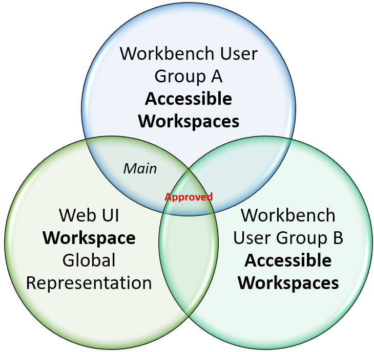 There are cases where certain users should only have access to the 'Approved' workspace and should not access the 'Main' workspace in the workbench and Web UI. In some cases, a user should only access a restricted set of contexts; for example, the user should only access the root language (English) and the target language for translation (French).