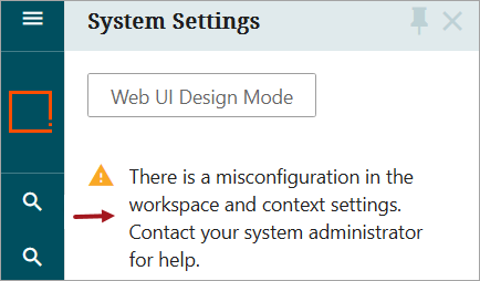 When there are no intersections for workspace and context between multiple User Groups that the user belongs to, or no intersections between User Groups and Workspace / Context Global Representation components (although it is not recommended to use these components), the following message is displayed for the user in Web UI System Settings.