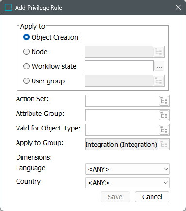 Note: The Object Creation option provides additional control for what a user can do when creating an object. Separate user action(s) that allow a user to create object(s) are also required, as defined in the User Actions and Error Descriptions topic.