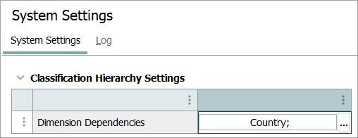 This option allows for folders in classification structures to be dimension-dependent. This is different than the dimension dependencies that are set on the object type. Selecting dimension dependencies will determine whether classification structure will or will not be shown in specific languages or countries. In the example below, the dimension dependency has been set for country by clicking on the ellipsis (
