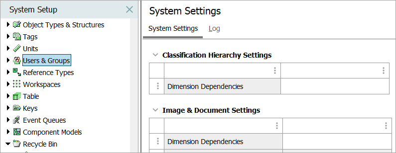 Global system settings are maintained in the System Setup tab, under the Users & Groups root node.