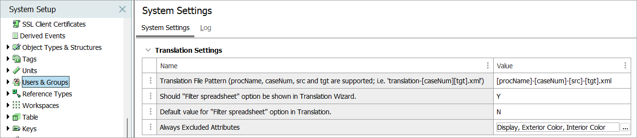 These options are available under System Setup > Users & Groups > Translation Settings.