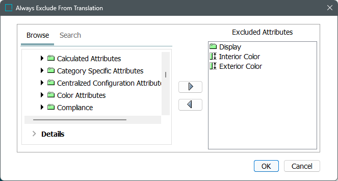 In the 'Always Exclude From Translation' dialog, select any language-dependent attribute or attribute group and: