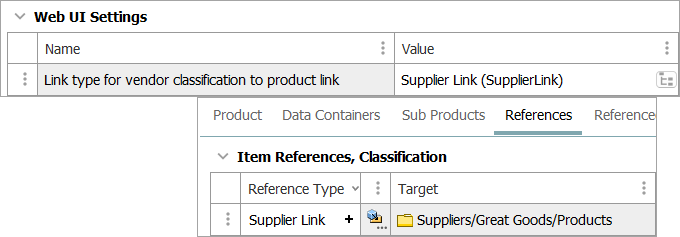 This setting is where the Reference Type that has been defined to use for products associated to a Web UI users' Supplier Products Folder is added. Once configured, products created through the Supplier Item Web UI automatically link to the supplier's classification structure. As shown in the image below, the Reference Type ID is entered and will be made available for use in the Web UI.