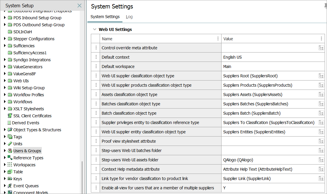 This option determines the object type that is 'assigned' to a Web UI user via the supplier user group and its associated classification(s). These object types connect the 'root node' for each of the created suppliers. A value is only required when setting up a Web UI that will include a supplier hierarchy. For more information regarding a Supplier Item Web UI setup, refer to the Supplier Web UI Setup Guide documentation.