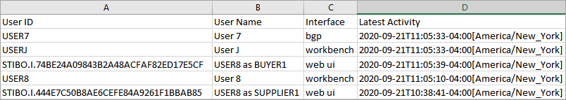 Whenever a user starts impersonating another user, a user with the name <'Impersonator User ID> as <Target User ID>' and the ID, which will begin with the 'STIBO.I' prefix, will be created. The audit trail will then indicate that it is this new user revising objects or making other changes. These special user types are hidden from all browse, search, and assignment interfaces and will not count against the licensed number of users. The Admin Portal's user activity report fills this void in visibility and is shown in the first image below (as well as some other examples).
