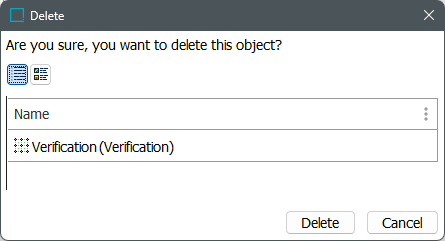 - A Delete Warning dialog box appears. Click Delete to delete the workspace.