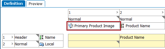 - The content definition of the row or column is now set to Asset Reference. The STEP Name of the asset reference type (e.g., Primary Product Image) appears in the content definition cell on the Definition tab.